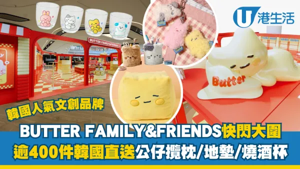 韓國超人氣文創品牌 BUTTER FAMILY&FRIENDS 亞洲首間快閃店登陸大圍圍方!現場化身超可愛多巴胺烘焙店,設有巨型吹氣 Butter 君、草莓山貨車等 5 大打卡位,更可玩韓式人生四格相機!場內發售逾 400 款精品,包括方塊攬枕、迷你毛公仔鎖匙扣、文具及家居用品等。
