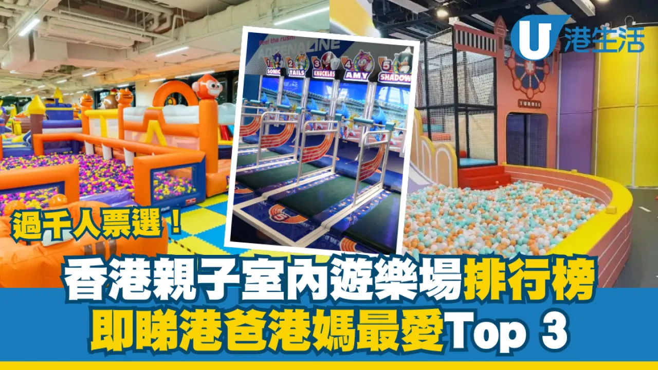 根據U Lifestyle X U Community的投票結果,第一位是JOYPOLIS SPORTS 啟德店,第二位是Bouncetopia by Kiztopia(啟德店),第三位是CHILDLIKE 童心樂園 (荃灣)。