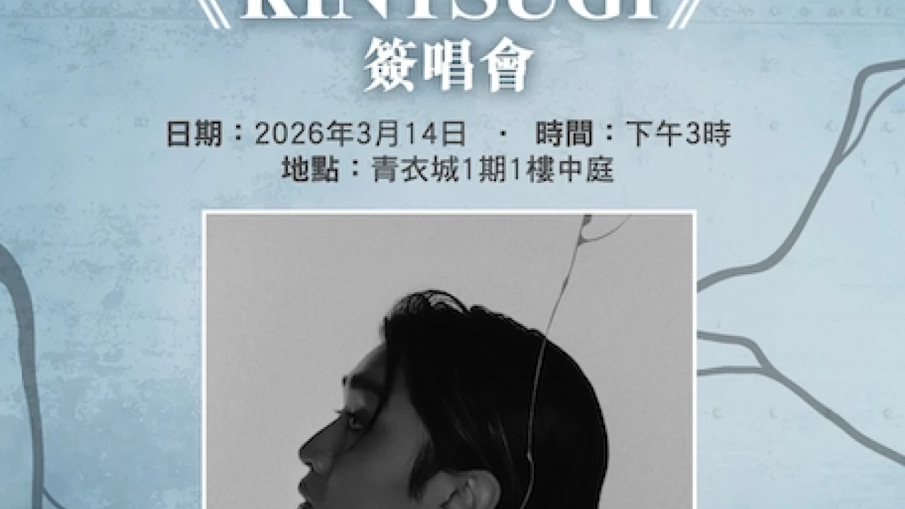 青衣城 x Jer 柳應廷 "KINTSUGI" 簽唱會 香港|柳應廷 Jer Lau將於2026年03月14日在青衣城 1期 1-F 中庭舉辦青衣城 x Jer 柳應廷 "KINTSUGI" 簽唱會 ,U Lifestyle為大家整合青衣城 x Jer 柳應廷 "KINTSUGI" 簽唱會 日期、場地、優先購票、公開發售日期及門票等詳情。大家務必留意,確保不會錯過青衣城 x Jer 柳應廷 "KINTSUGI" 簽唱會 的活動詳情!