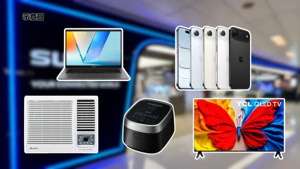 不想親自去門市購物的朋友,蘇寧的網店補貼優惠亦高達$4,600。買手機及數碼產品每滿$1,000,即可減$100,最高疊加至$2,000;而買指定家電每滿$100,可輸入兩款優惠碼,即減$15及$10,最高減足$1,500及$1,000。