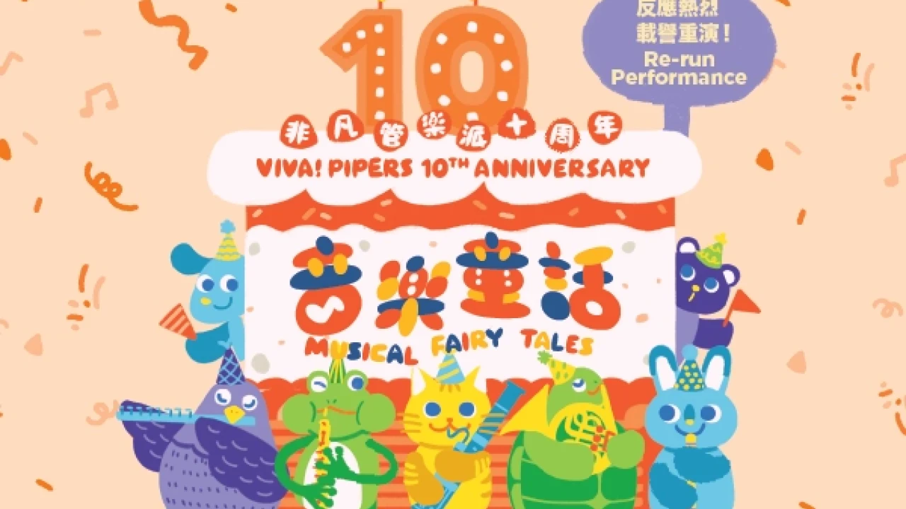 非凡管樂派(Viva! Pipers)將舉辦一場十周年慶典音樂會,慶祝其創團十週年。自2015年首次演出以來,該樂團以其富創意及趣味盎然的演奏,為觀眾帶來音樂樂趣。本次音樂會是一場親子音樂會,將演出深受歡迎的校園巡迴節目,並呈獻經典音樂童話《青蛙王子》與《龜兔賽跑》。演出以粵語進行,適合五歲或以上觀眾,設有下午二時三十分及下午四時三十分兩個場次。