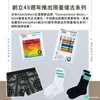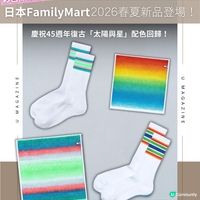 由FACETASM 設計師落合宏理操刀的「Convenience Wear」系列,推出2026 春夏新品,為了慶祝日本FamilyMart45週年,設計師回溯至1980年代品牌曾使用的「太陽與星」標誌,提取紅、橙、綠、藍四色融入純白襪身,滿載濃厚的昭和復古氛圍!除了週年紀念款,FamilyMart今季更大玩春夏粉嫩色彩,主打薄荷綠、淺藍與粉紅的清爽撞色,讓毛巾與長襪系列充滿季節感,此外,熱賣的四角褲亦同步推出限定條紋與素色款,超高性價比! 圖片來源:日本FamilyMart #日本 #FamilyMart #svtum