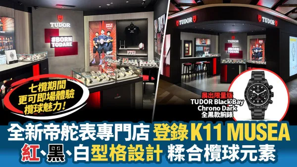 帝舵表(TUDOR)首間專門店已正式於K11 MUSEA開幕!新店以品牌標誌性的紅、黑、白三色為主調,並以帝舵表與紐西蘭國家欖球隊All Blacks的全球合作為核心設計靈感,整個空間融合了鐘錶文化與欖球元素,無論是錶迷或球迷,都可深入感受品牌「BORN TO DARE」的冒險精神。