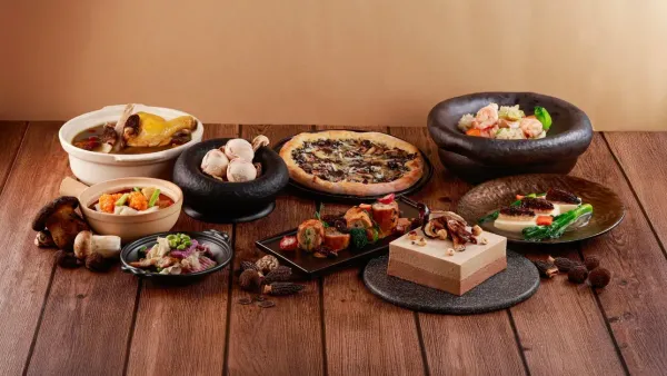 晚餐重點菜式更加豐盛,延續雲南風味與創新巧思,包括羊肚菌淮山紅棗螺頭燉雞湯、繡球菌萵筍百合蝦球、XO醬鮮姬松茸炒沙巴龍躉斑片、鮮黃耳竹笙砂鍋豆腐煲、黑牛肝菌露筍銀杏炒牛柳粒、蒜香椒鹽鹿茸菇,鮮美至極。而且,師傅將創新精神發揮得淋漓盡致,以中西合璧概念,將雲南菇菌融入至西式熱葷,包括新鮮黑松露野菌薄餅、薄脆酥皮三文魚卷配蘑菇泥、慢煮法式野菌雞肉卷等。