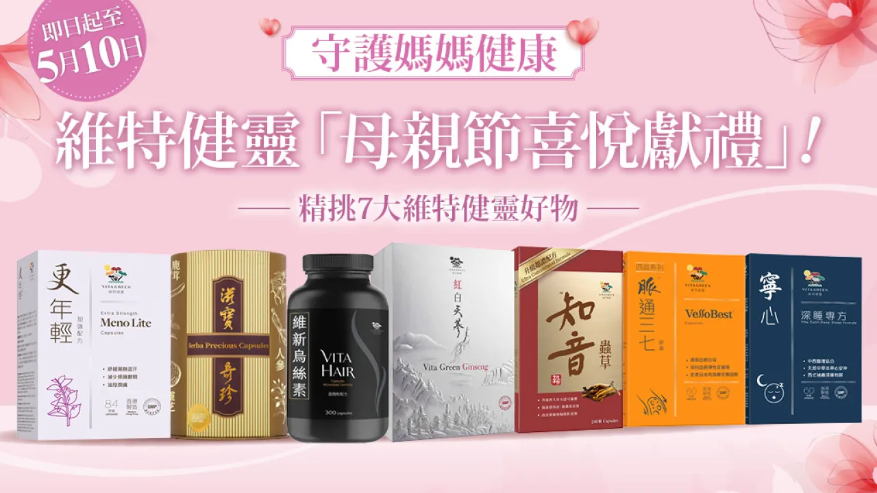 媽媽為了照顧家人,長年辛勞。無論是日理萬機的「雙職媽媽」,還是家中最強大的「CEO」,她們 365 日都為家庭與子女無私奉獻。在這個專屬於她的母親節,維特健靈推出「母親節喜悅獻禮」,精選 7 大健康好物,為媽媽守護健康。