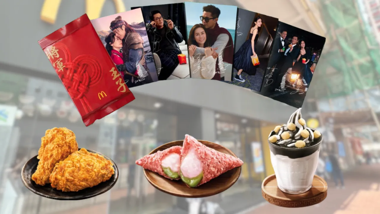 麥當勞人氣將軍漢堡系列由即日起正式回歸,同時為大家帶來多款全新主題美食,包括日式甜咖哩雞翼、抹茶麻糬三角批、麻糬芝麻新地等。麥當勞今期強勢聯乘甜蜜組合古天樂及宣萱推出一套共9款限量「將軍玉子」珍藏卡,現凡選購指定套餐即可獲贈隨機款式,儲齊更可拼湊出新歌《無時空之戀》主題海報,粉絲不容錯過。