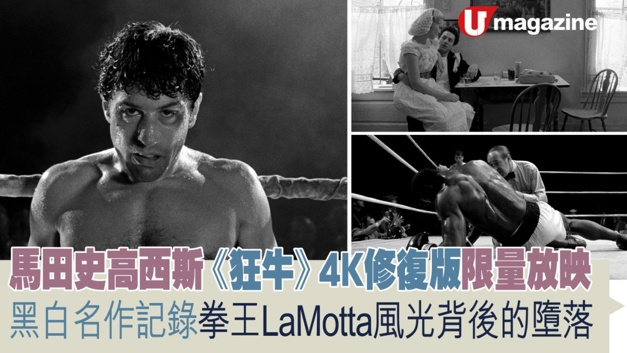 大部分體育電影主打熱血勵志,但馬田史高西斯1980年的名作《狂牛》則以黑白畫面反映拳擊界的殘酷、世界冠軍在擂台下的墮落。被譽為史上最佳體育電影的《狂牛》改編自美國中量級拳王拉莫塔 (Jake LaMotta) 的故事,榮獲奧斯卡影帝和最佳剪接寶座,全新4K修復版現在重返大銀幕。
