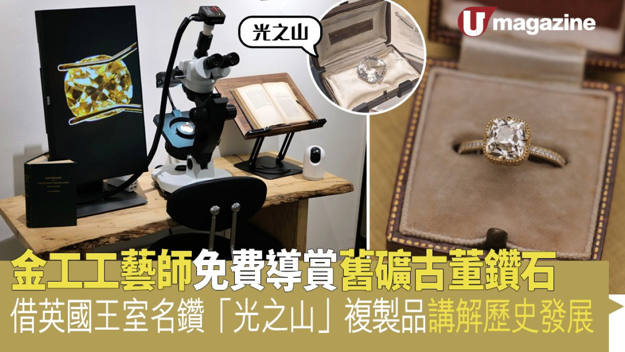 ▌「日出金工」舉行免費展覽及工作坊,帶大家認識舊礦切割鑽石。▌用上專業顯微鏡鑒賞古董鑽石的細節。▌導賞員以著名鑽石「光之山」的複製品、歷史地圖、書籍講解鑽石歷史軌跡發展。