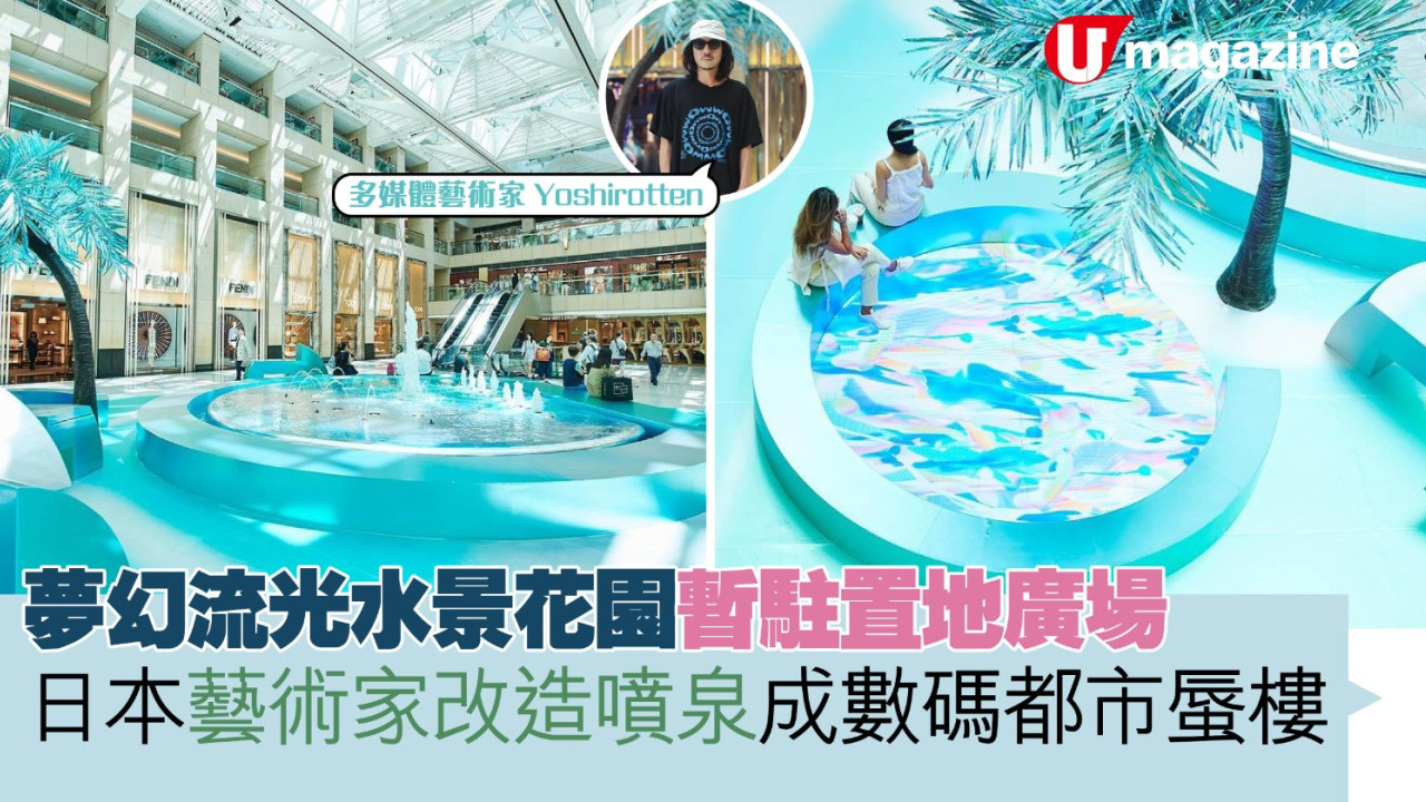 置地廣場中庭標誌性的噴泉近日換上了夢幻湖水藍色的新裝,配上棕櫚樹及浮光掠影,仿似置身外地度假,充滿夏日風情。噴泉由日本多媒體藝術家Yoshirotten改建,打造成他香港首個大型數碼藝術裝置「Fluid Garden」,大家可以踩入數碼水池,水池的影像會隨動態產生意想不到的視覺效果。