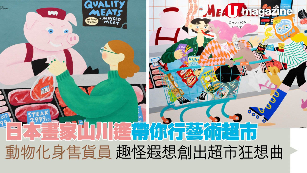 有沒有人很喜歡到超級市場亂逛解壓?日本藝術家山川遙就是其中一份子,她很享受在超市裏尋寶,觀察超市中的人生百態,她更以超市為創作主題,以繽紛色調畫出異想天開的畫作,如坐上購物車比賽、躺在收銀輸送帶上等,作品充滿趣味,新系列的作品現正再次來到香港展出。