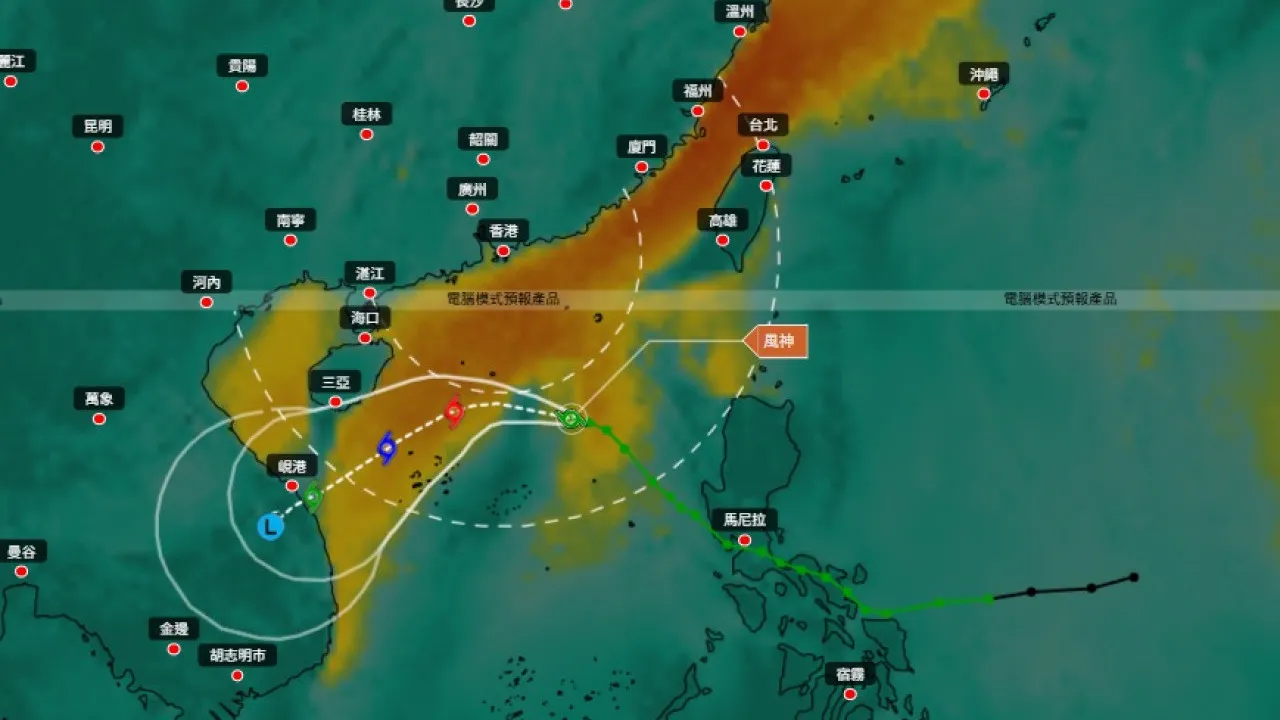 目前熱帶氣旋「風神」正位處南海中北部,增強至熱帶風暴級別,將繼續往西北偏西方向移動。沈志泰估計,「風神」會在周二(21日)移至香港南面海域,惟華南沿岸已受到乾爽的東北季候風支配,預料「風神」強度會開始減弱,移動速度比較慢,並隨着氣流轉向西南方移動,至於轉向的時間及位置仍有變數。