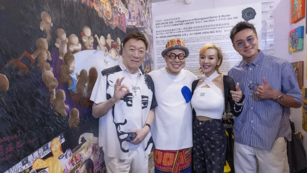 香港戲劇傳奇人物詹瑞文(詹 Sir)首度進軍繪畫領域,即帶來震撼藝壇的重量級作品。他與著名藝術家、「光頭仔」原創作者梁賀(Lego)聯袂創作的大型混合媒介畫作《光頭仔與四眼詹的盛宴》,正式以880,000 港元價格亮相,成為本年度《新藝潮十週年:ArtNext Fair 2025》展覽中最炙手可熱的焦點。此作不僅是市場關注的商品,更是詹 Sir 踏入六十甲子,對其三十餘年戲劇人生的一次深情回顧與藝術總結。在展覽期間,詹Sir更獲得多位圈中好友到場支持,包括黃浩然、葉子楣、陳欣健、李蕙敏、樂易玲、Sa爸等,場面熱鬧非凡。