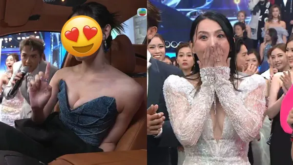 幸好,今年壓軸大抽獎環節的兩位大獎得主極具「事業心」,成功自製了「黃金畫面」。新晉女藝員曾文心抽獎奪得總值$339,800的名貴房車大獎,她即場試坐入新車後,便非常懂得抓緊鏡頭機會。她輕輕調整坐姿,讓Deep V晚裝完美呈現豐滿上圍,成功引起網民熱烈討論。