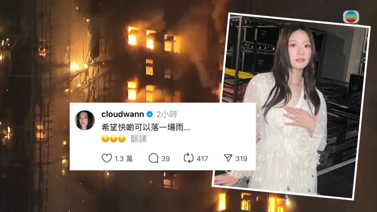 本港今日(26日)下午發生的大埔宏福苑五級大火,造成至少13人死亡的慘劇震驚全港。超過百位藝人集體轉發民間支援資訊,並為災情祈願「天佑香港」,而女歌手雲浩影(Cloud)在Threads平台的一則留言,「希望落雨」的言論意外惹來網民熱議。