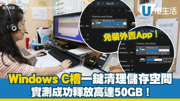 Windows C槽沒空間,不但讓令電腦執行速度變慢,甚至有可能連開Google都有卡網情況出現!想清理c槽但又不想使用第三方工具進行進階操作,只要跟着以下步驟,便能徹底移除C槽中的隱藏垃圾,YouTuber更實測可釋放高達50 GB儲存空間,讓電腦重獲新生!