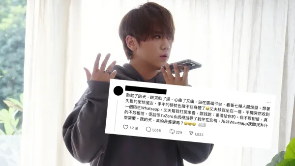 日前,有一位宏福苑居民兼姜濤粉絲在threads平台上,憶述自己因火災連日煎熬、身心受創時,突然收到一個陌生WhatsApp訊息,對方自稱是姜濤給她的。她起初不相信,但對方稱透過品牌To Zero的粉絲資料系統,核實了她居住在宏福苑的身份,並詢問她有什麼需要。