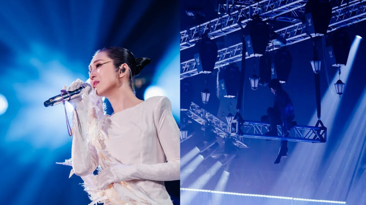 楊千嬅相隔多年終於重返香港的舞台,近日在香港體育館 (紅館)舉辦一連六場的「楊千嬅Live My LIVE演唱會」,不過在日前(1日)第三場演唱會竟在舞台上發生意外,除了天氣乾燥導致部分電子接收儀器出現信號問題,特技人更因此懸吊半空至完場,引起網上熱討。