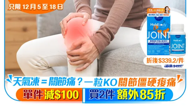 而家更有限時優惠,原價$499的澳洲Holdbody™ JOINT關節筋肌(特強止痛)配方(60粒裝),於12月5至18日期間,單件優惠價$399/件(原價$499),買2件的話更有85折,折後平均只需$339.2/件!