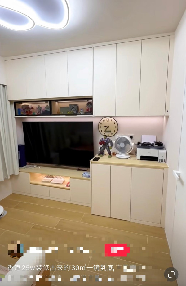 過去亦有裝修公司在小紅書分享「公屋變身豪宅」案例,一個350呎單位竟變成有三房一廳格局室內設計師把每吋空間也用到盡,以頂天入牆櫃、隱藏式傢俬、L形上下錯位床設計,為一家四口設計出理想家居。