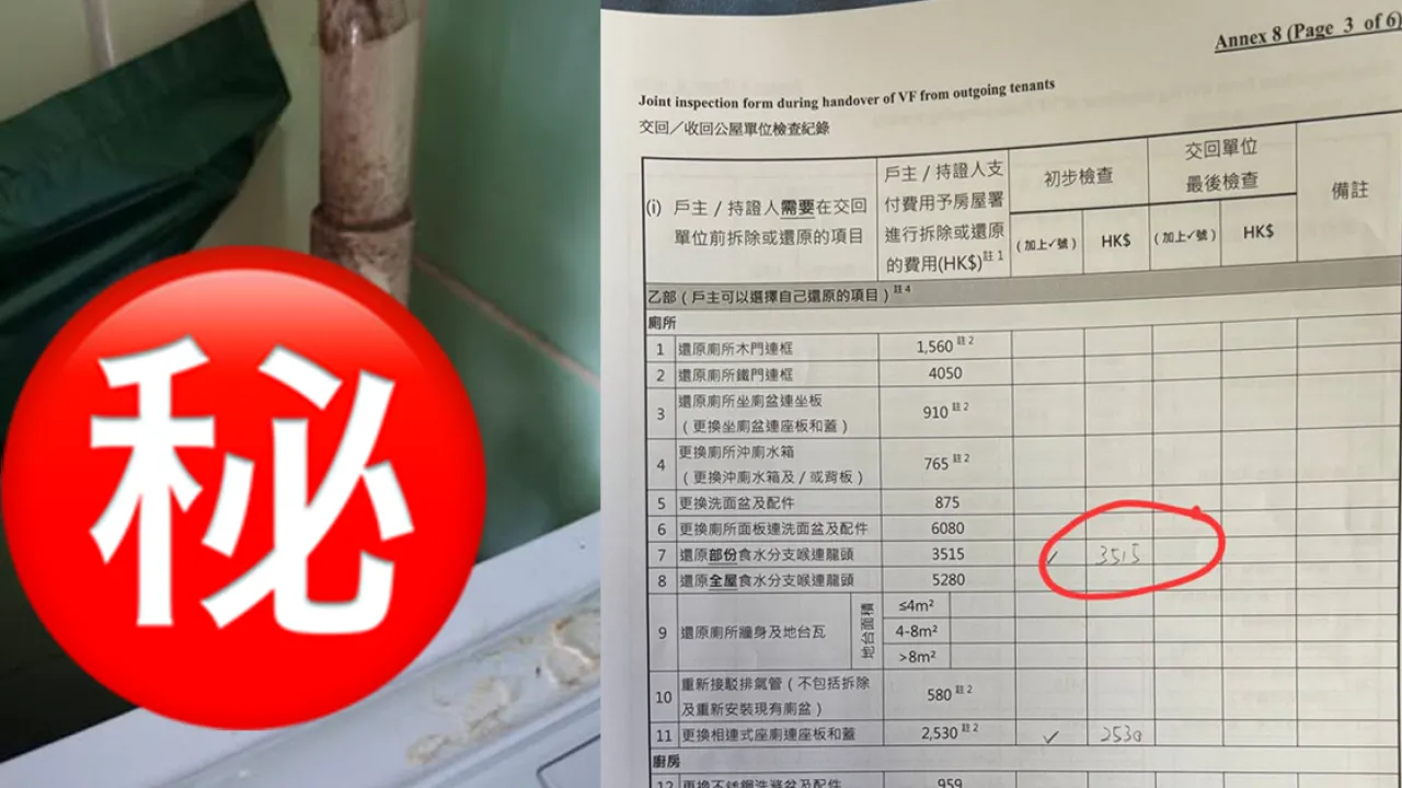 還原公屋|房署主任要求還原廁所一配件!稱未換要賠$3513!網民:呢個咁值錢咩
