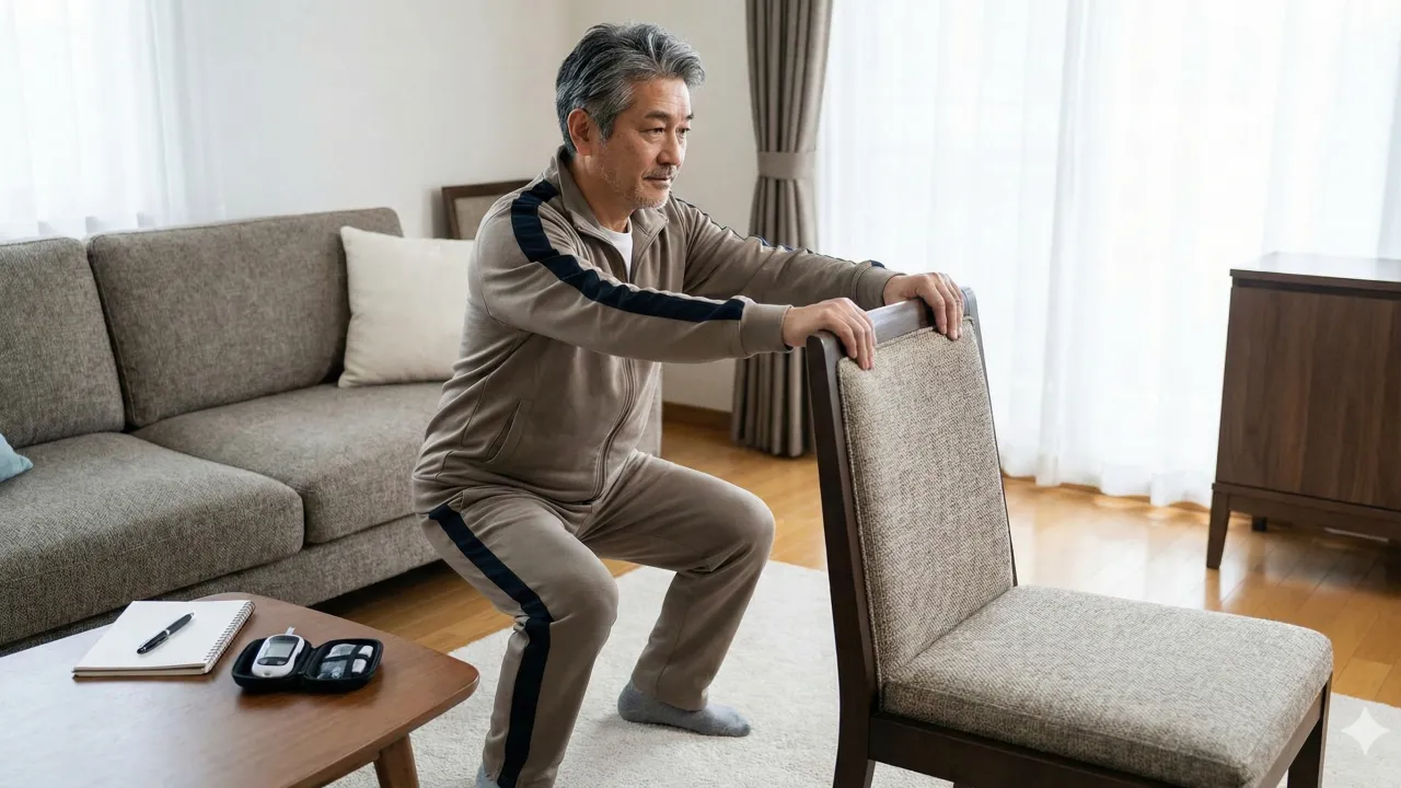 降血糖運動|第2招:椅子深蹲——適合腿部和髖部疼患者