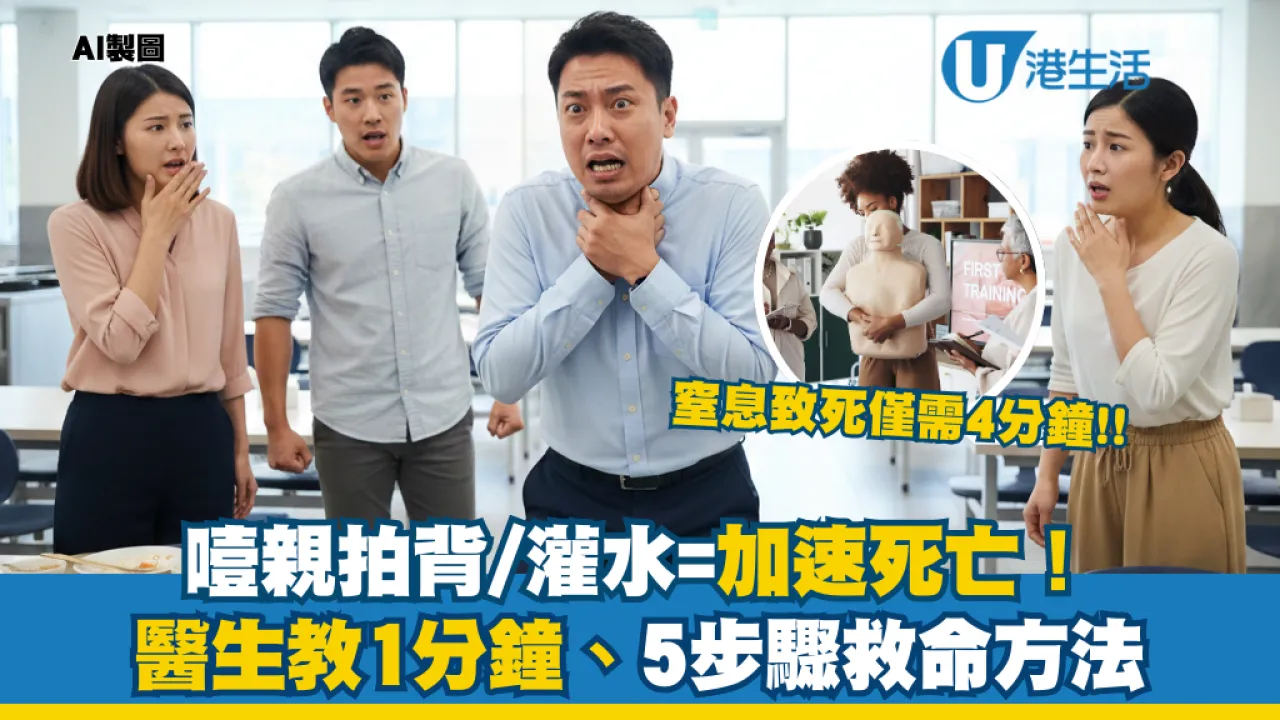 【哽親急救】 見到有人食嘢哽親,第一時間幫對方拍背或灌水?停手!這兩個動作隨時將異物推入氣管深處,變成殺死對方的最後一根稻草!黃軒醫生警告,真正的哽塞是無聲無息的,黃金救援時間只有短短 4 分鐘,一旦腦部缺氧過久恐致腦死!當發現身邊人面色發紫、雙手掐頸卻「發不出聲」時,切勿猶豫,即學醫生傳授 5 步救命法,瞬間把奪命異物「炸」出來!