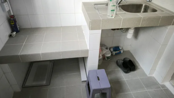 樓主在Facebook群組「香港公營房屋討論區」發帖,表示自己原打算為廚房灶底加裝龍門架,改善廚房收納問題,但報價卻令他卻步。他指出,所謂龍門架「只係得4隻門,裡面一件木板層板都冇」,收費卻高達$2400,令他不得不決定放棄,選擇自行DIY。從他分享的照片可見,廚房灶底屬房署原裝的水泥磚砌設計,內部空間高低不一,實用性有限,屬是不少公屋的常見配置。