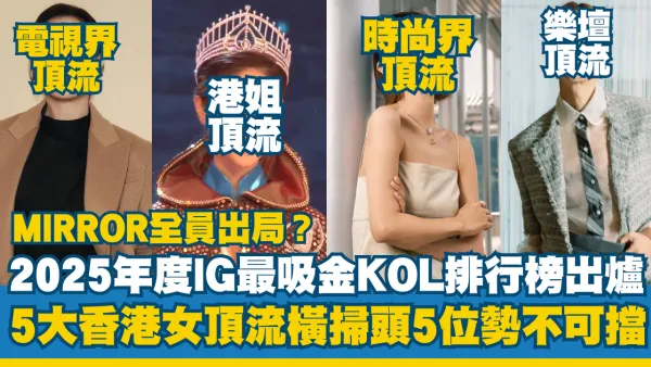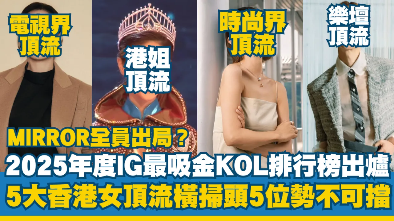 近年明星藝人轉型KOL接廣告已成常態,吸金力隨時勁過拍戲唱歌。近日有市場公司整理出2025年度IG最「吸金」KOL排行榜,結果相當有驚喜!榜單頭10名當中,女藝人霸佔9席,全港僅得1位男藝人能夠躋身十大,而昔日曾霸榜的MIRROR成員竟然全員出局,引起熱烈討論!(IG粉絲人數取自截稿前時間)