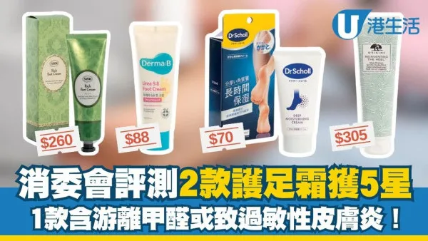 消委會足部護理霜保濕︱消委會測試了10款樣本,發現當中有2款獲5星評分推介,其保濕效能表現尤為出色,使用28日後皮膚水分可提升逾70%!然而,其中有1款被檢出游離甲醛,以及3款被檢出香料致敏物,提醒大家需警惕香料過期氧化或引發高致敏風險,同時慎用含有可釋出甲醛成分,或檢出游離甲醛的足部護理霜,以免引致局部的過敏性接觸性皮膚炎。