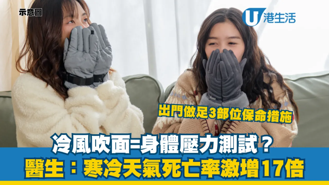 寒流|心肌梗塞|腦中風|天氣又一次迎來急跌,冷風撲臉不但令人不適,更讓人的身體悄悄受到傷害!黃軒醫生指,這些冷風會帶來生理刺激,讓身體打開許多風險開關,嚴重的話會引致心紋痛、心肌梗塞,和腦中風等,在寒冷環境下的死亡風險可比溫暖時激增17倍!所以不容忽視。這時我們可要做好防身措施,例如護好脖子、手腕,和腳踝等三個出口,保暖之餘又能阻止冷風偷渡!