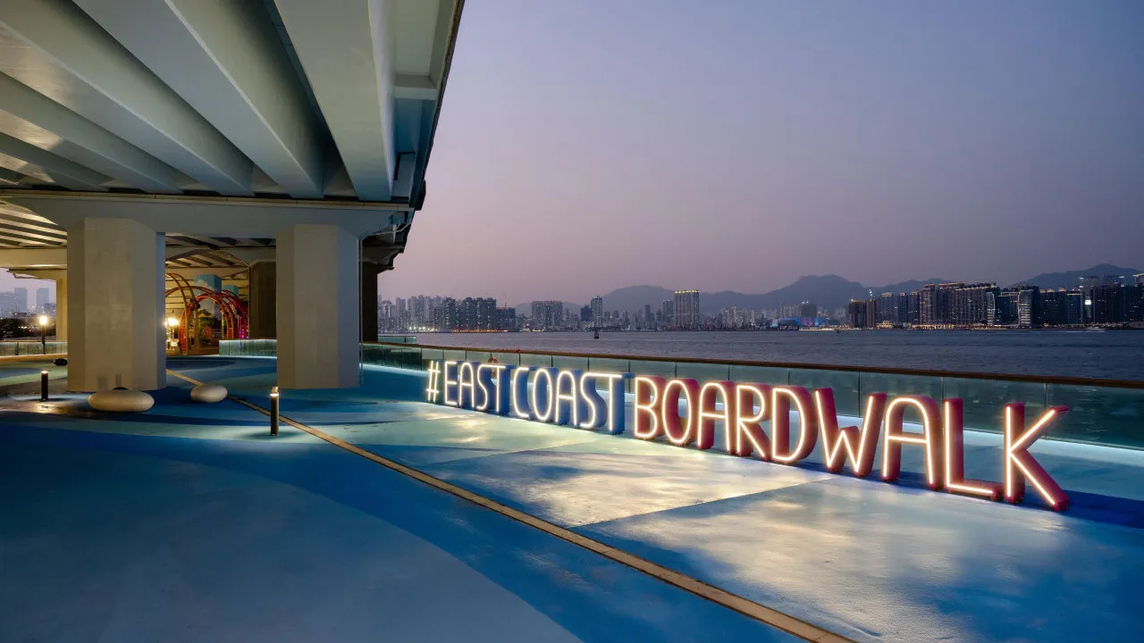 東岸板道(東段)已於2025年12月末開放予公眾使用,全長約13公里的港島北岸海濱全線貫通,內設觀景台、多功能藝術空間、共享徑與行人專用路徑等海濱共享空間,成為不少市民的聚腳點。