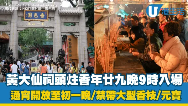 嗇色園今日(1月29日)公布黃大仙祠大除夕夜「頭柱香」及新春參拜安排。