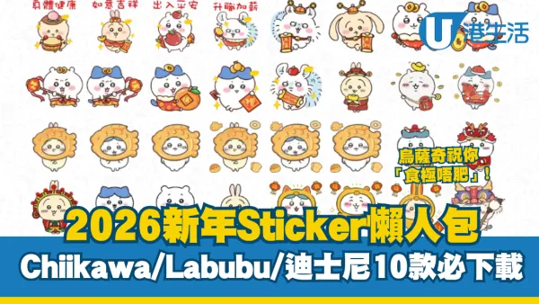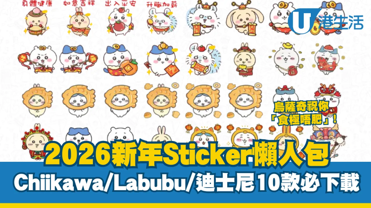 2026新年Sticker|Chiikawa/Labubu/迪士尼10款必下載!烏薩奇祝你「食極唔肥」