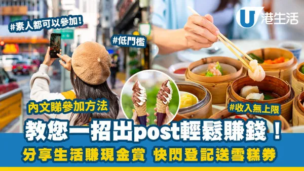 有無諗過您隨手一影嘅美食打卡相、或者日常去玩嘅生活點滴,原來都可以賺到錢!出post賺錢唔再只係KOL嘅專利,只要分享生活,分分鐘成為您其中一個收入來源!
