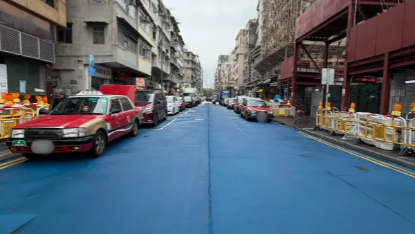 有網民在社交平台Threads上發文,指在九龍城城南道散步時,驚覺路面被鋪上一層極為搶眼的藍色物料,隨即拍照發帖詢問「唔知係咪因為工程關係,連路面都油上全藍色,好靚。」相片曝光後隨即掀起熱潮,網民紛紛發揮創意,笑言該街道已正式更名為「城藍道」。