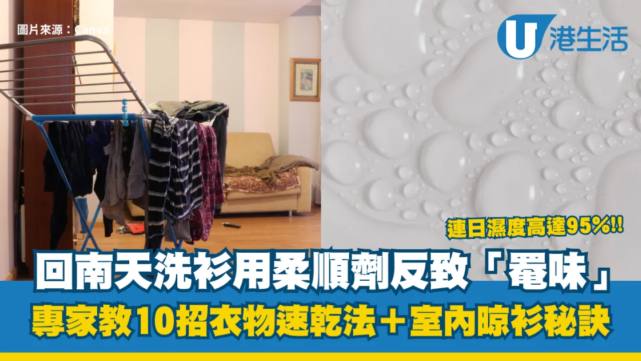回南天|連日濕度高達95% 洗衫用柔順劑反變「罨味」元兇!專家教10招衣物速乾法+室內晾衫秘訣