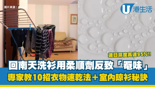 回南天|大家十分討厭的回南天又殺到!根據天文台預測未來一周都多雲有雨,相對濕度更高達95%!每逢回南天令人最頭痛的,莫過於衣服洗後難以乾透,更有機會發霉和發出異味,本文整合不同家事達人教授的乾衣方法,提醒在潮濕天氣下洗衫忌用柔順劑,又分享防臭秘技及10大衣物速乾法。