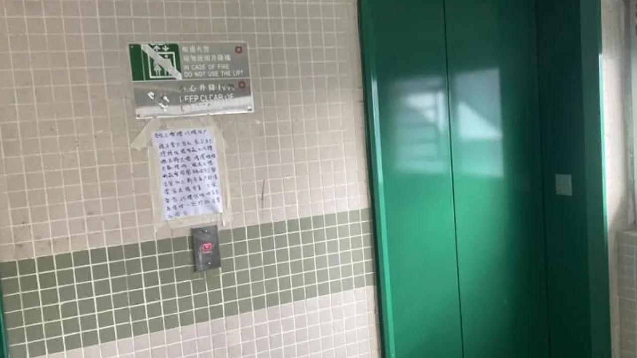 公屋電梯大堂罕有貼手寫告示