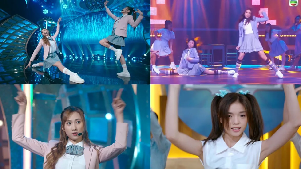 其實Yumi與Aeren昔日於《聲夢傳奇》同組,曾一齊跳唱《跳舞街》贏盡好評。今次兩人於《臥底嬌娃》再次同台,一齊跳唱戴祖儀的歌曲《自我處理》,除了穿上與《聲夢》比賽期間的同款校服外,鍾柔美更重演經典一字馬,勾起廣大觀眾的集體回憶。