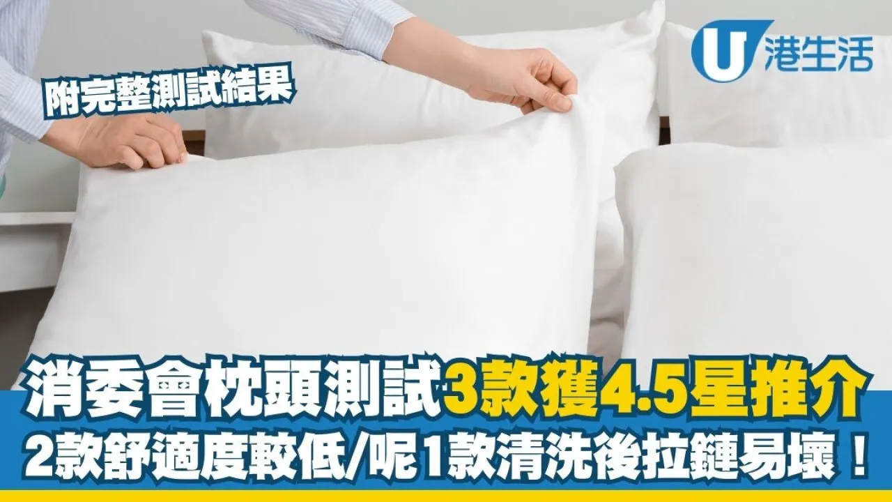 消委會測試市面上13款枕頭樣本,包括7款記憶棉枕、3款乳膠枕,以及3款聚酯纖維枕,售價由$79.9至$1,688不等。結果發現,所有樣本均通過防火和阻燃劑含量測試,而且大部分樣本的承托表現均不俗,惟其耐用程度和舒適度表現則各有參差。