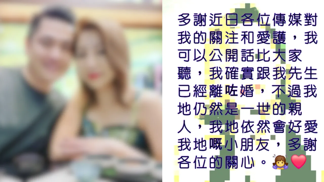 關伊彤寫道:「多謝近日各位傳媒對我的關注和愛護,我可以公開話比大家聽,我確實跟我先生已經離咗婚,不過我地仍然是一世的親人,我地依然會好愛我地嘅小朋友,多謝各位的關心。」