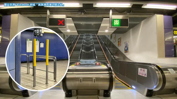 近日有網民在Facebook 群組「筲箕灣西灣河關注組」發文分享,指在接近D出口位置的扶手電梯驚現2條「黃色大柱」,形容「尋晚都仲無架喎,今朝突然破土而出」,疑似是一晚之間突然被裝上的新設施,即引起街坊關注。