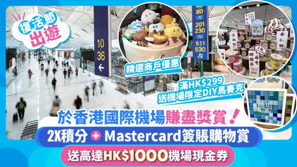 又到復活節這個出遊旺季,現在出發前,在香港國際機場就可以盡情消費賺取豐富獎賞!包括HKairport Rewards會員消費享2X積分,高達8%回贈、Mastercard簽賬獎賞、買滿HK$50,000腕錶產品即減HK$6,000,消費滿 HK$299 即送Threads爆紅機場限定DIY馬賽克,讓你的旅程從出發到回程都充滿驚喜!