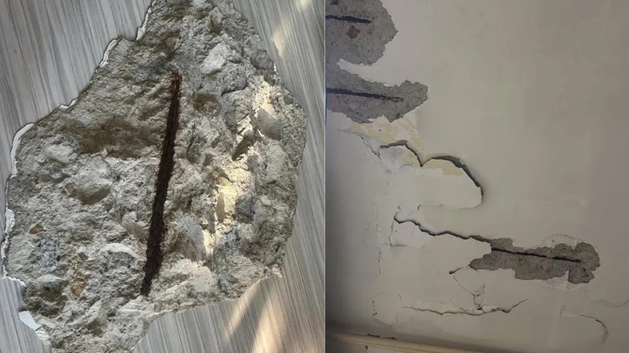 有網民在Facebook群組「香港公營房屋討論區」分享,自己居住於樓齡46年的屯門三聖邨,近日吃飯時竟然有大塊石屎掉落,樓主更指險些被砸到頭!他表示自己之前已多次找房署翻新,當時爆石屎已經令家中雪櫃和洗衣機都出現問題,最後要另外找人修繕方能妥善處理。