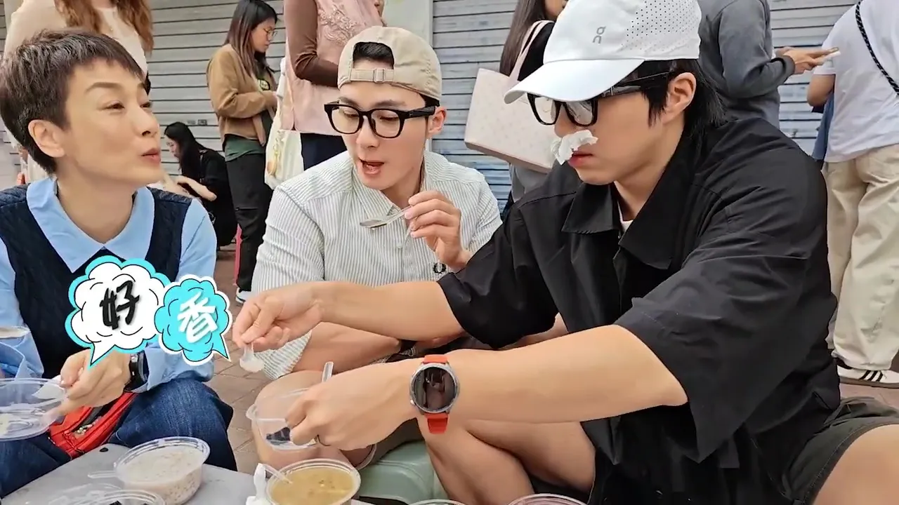 三人放下身段、到「渠味」糖水舖吃甜品也是相當好睇!雖然三人試伏期間一再飄來由附近坑渠位傳來的陣陣惡臭,美儀姐更一度臭至面容扭曲,坤哥則「紙巾塞鼻孔」積極抵抗惡臭、畫面爆趣。雖然「臭得驚人」,但三人還是對該舖的甜品讚不絕口,認真神奇。