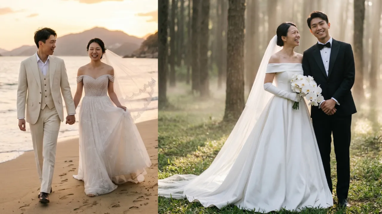 【AI 婚紗相 / 慳錢攻略 / 結婚成本 / Google Gemini / AI 指令 / 婚攝】結婚開支樣樣都係錢,單單是飛到外地或找專業影樓拍攝一輯婚紗相,動輒都要過萬元!不過隨着 AI 技術越來越強大,近日就有情侶發揮創意,竟然用 AI 工具「零成本」自製婚紗相 。成果曝光後驚艷大批網民,直呼「靚過出去影」!《港生活》今次為大家拆解這個爆紅現象,並親自實測教你如何用免費 AI 工具(如 Gemini),只需幾步就能生成獨一無二的大師級婚紗相!