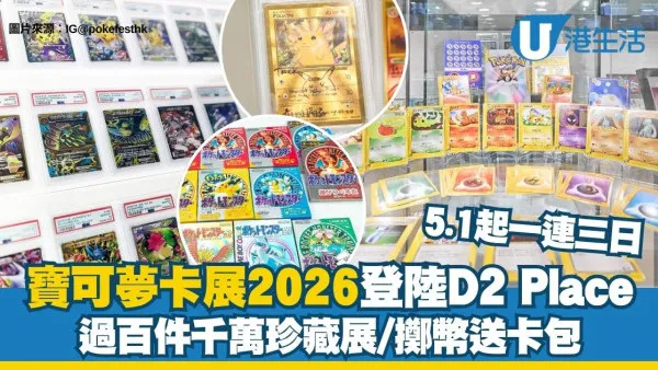 D2寶可夢︱為慶祝Pokémon誕生30週年,萬眾期待的「PokeFest 2」寶可夢卡牌展將於2026年5月1日起一連三日登陸荔枝角D2 Place。今屆展覽規模全面升級,不僅展出總值逾千萬港元的珍稀名卡,更首推「無福袋」純粹交流和專業送評服務。現場更有星級嘉賓陣容和擲幣挑戰等豐富互動,入場門票僅由$30起,絕對是全港寵物小精靈訓練員不容錯過的年度盛事!